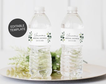 Eucalyptus Water Bottle Label Template, Instant Download, Wedding Favor, Printable Wedding Bottle Label, Bridal Shower Favor, Templett, C31