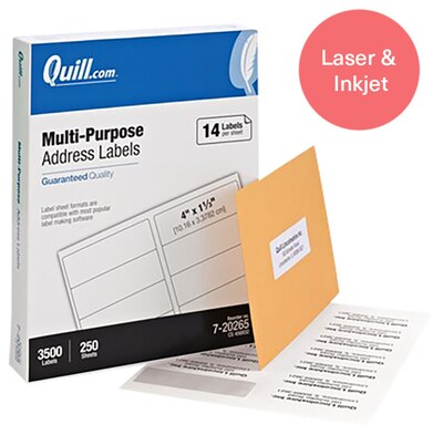 Quill Brand® Laser/Inkjet Address Labels, 1-1/3" x 4", White, 3,500 Labels (Compare to Avery 5162, 5262, 5962, 8162 & 8462)